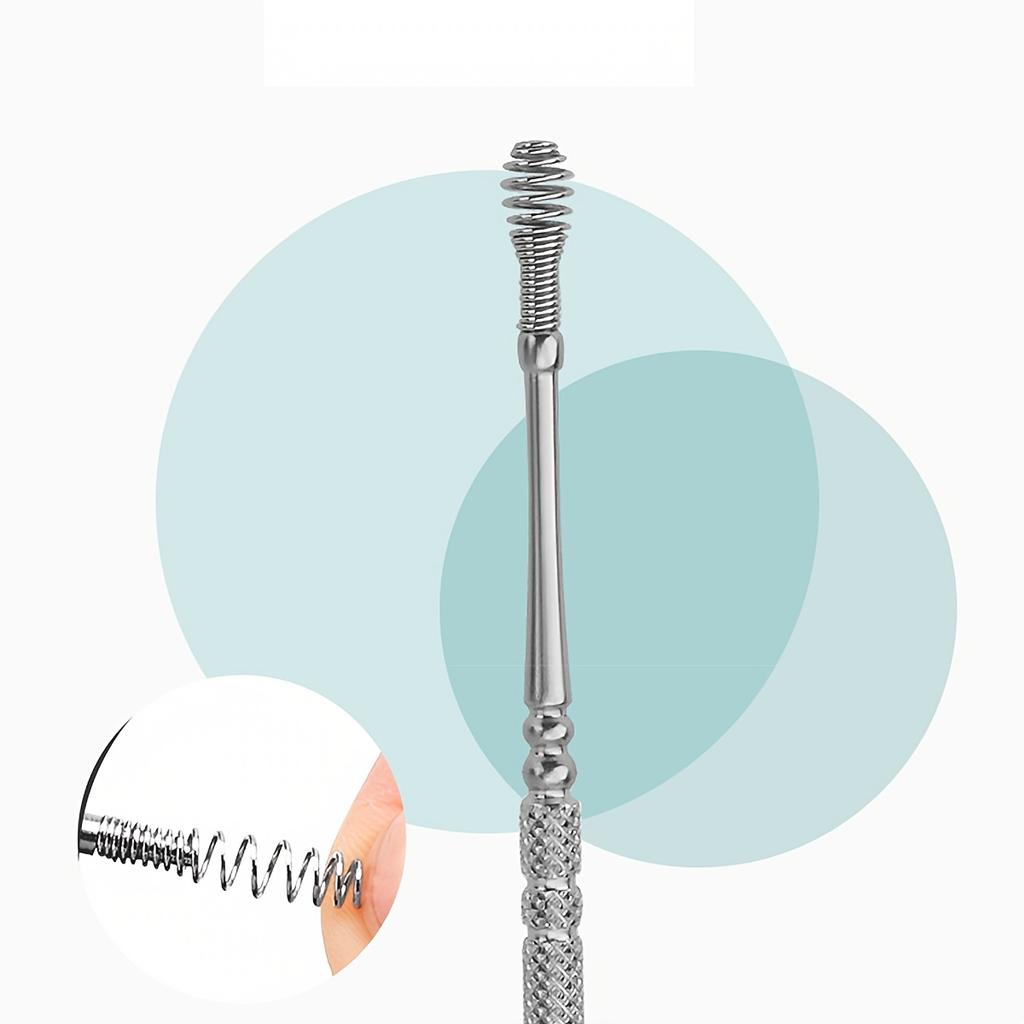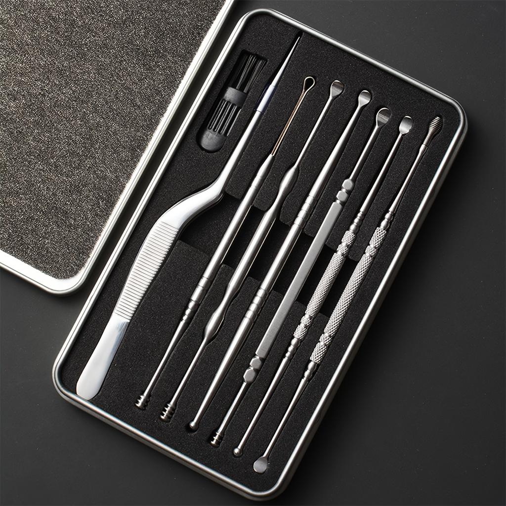 Набор для ухода за ушами из 8 предметов из нержавеющей стали - Двусторонняя ложка, пинцет, зажимы - Твердый набор для чистки ушей без запаха - Руководство, батарейки не требуются