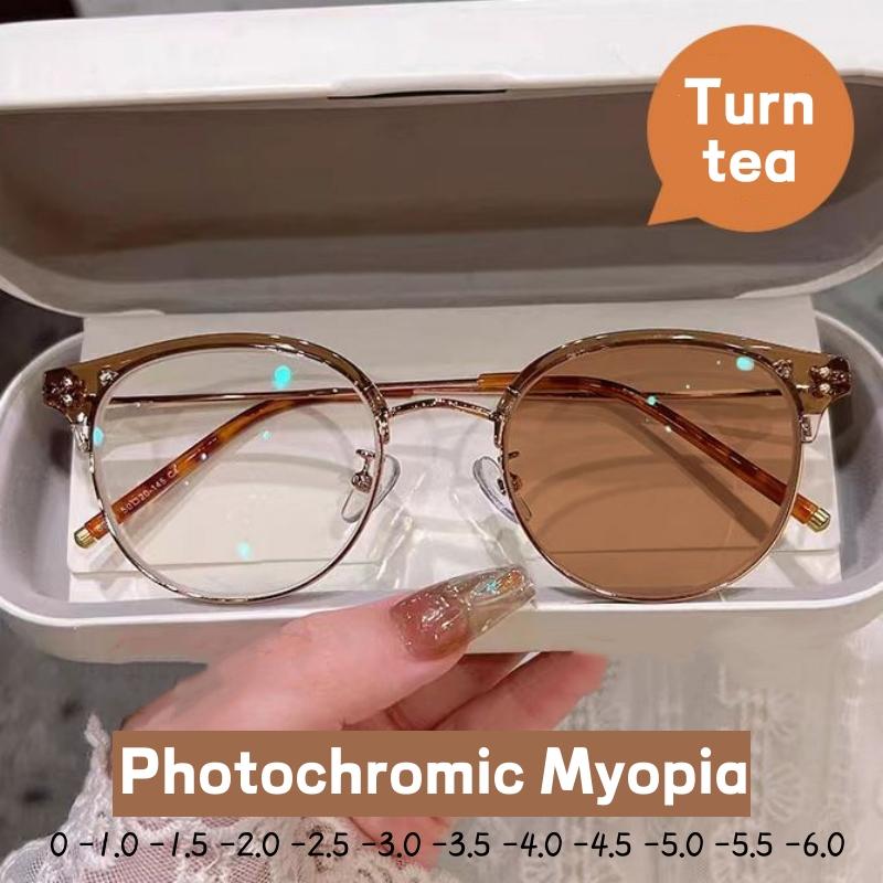 Модные готовые фотохромные очки, женские винтажные антисиние очки для близорукости, модные близорукие очки, уличные солнцезащитные очки