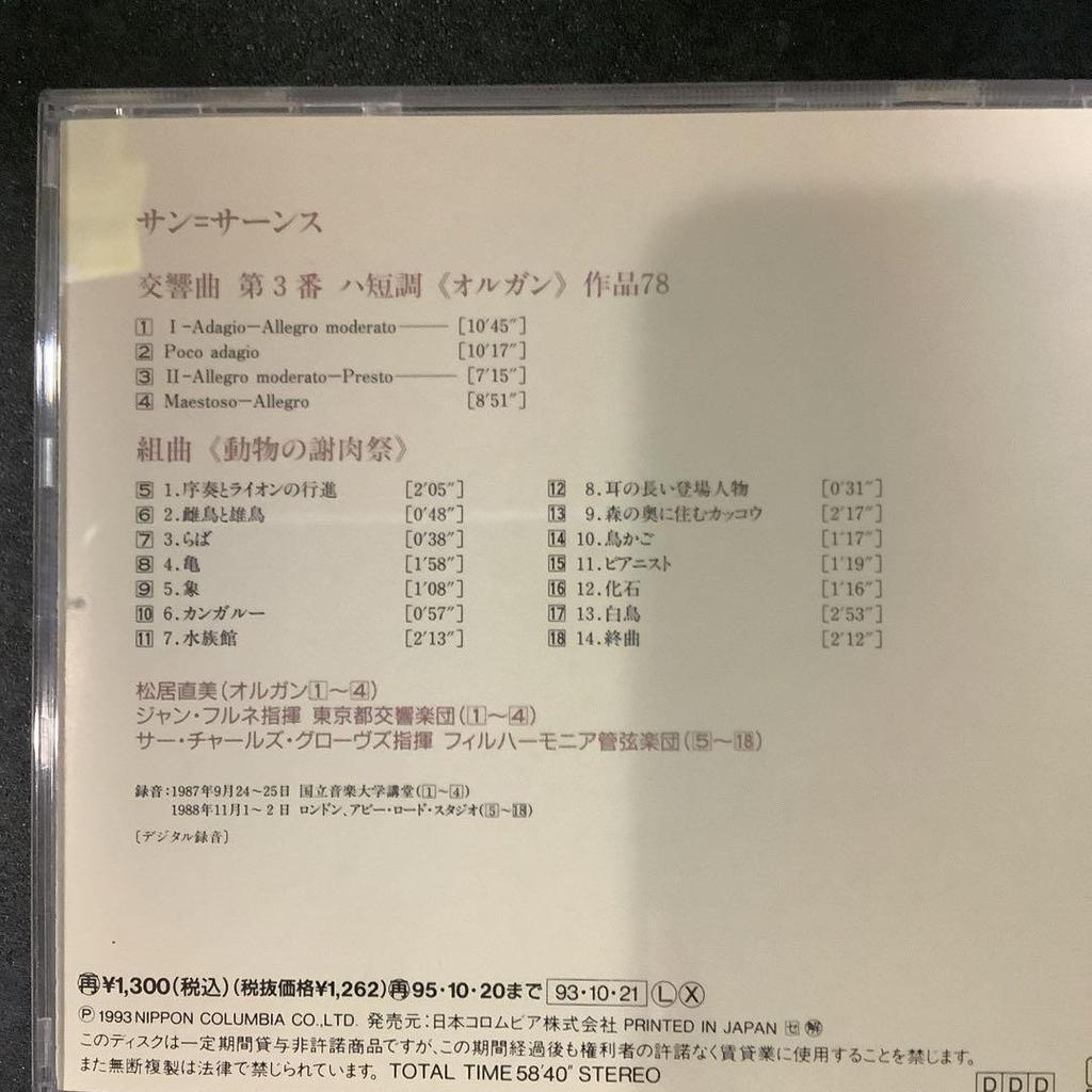 [USED] Saint-Saens Symphony No. 3 Organ, Carnival of the Animals CD 183