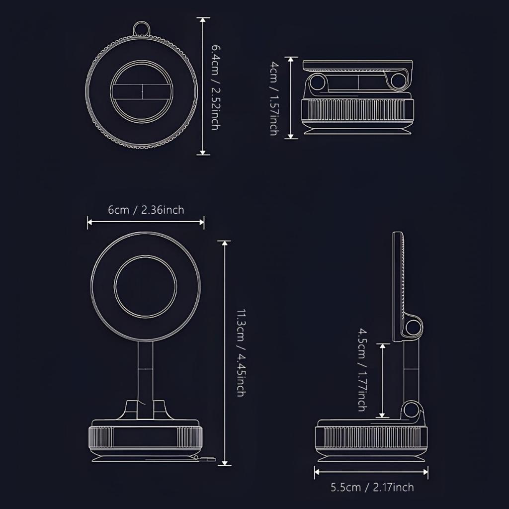 Прочная магнитная подставка для телефона: Наша магнитная подставка для телефона оснащена мощным круглым магнитом N52, который точно совпадает с магнитом внутри телефона.. Автомобильный держатель для телефона обеспечивает сильную магнитную силу, позволяя вам легко и безопасно преодолевать неровности, крутые повороты и даже резкое торможение, не беспокоясь о том, что он упадет.. Усовершенствованные металлические кронштейны позволяют вращать устройство на 360 градусов и регулировать его под разными углами для оптимального положения просмотра.