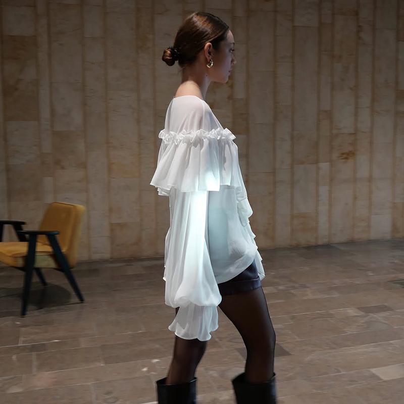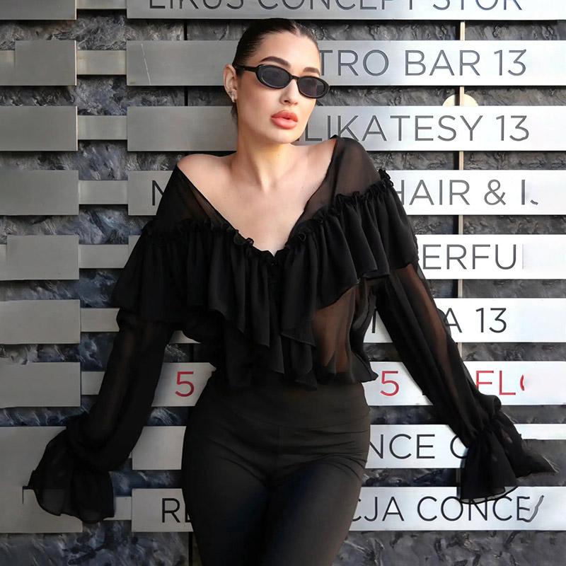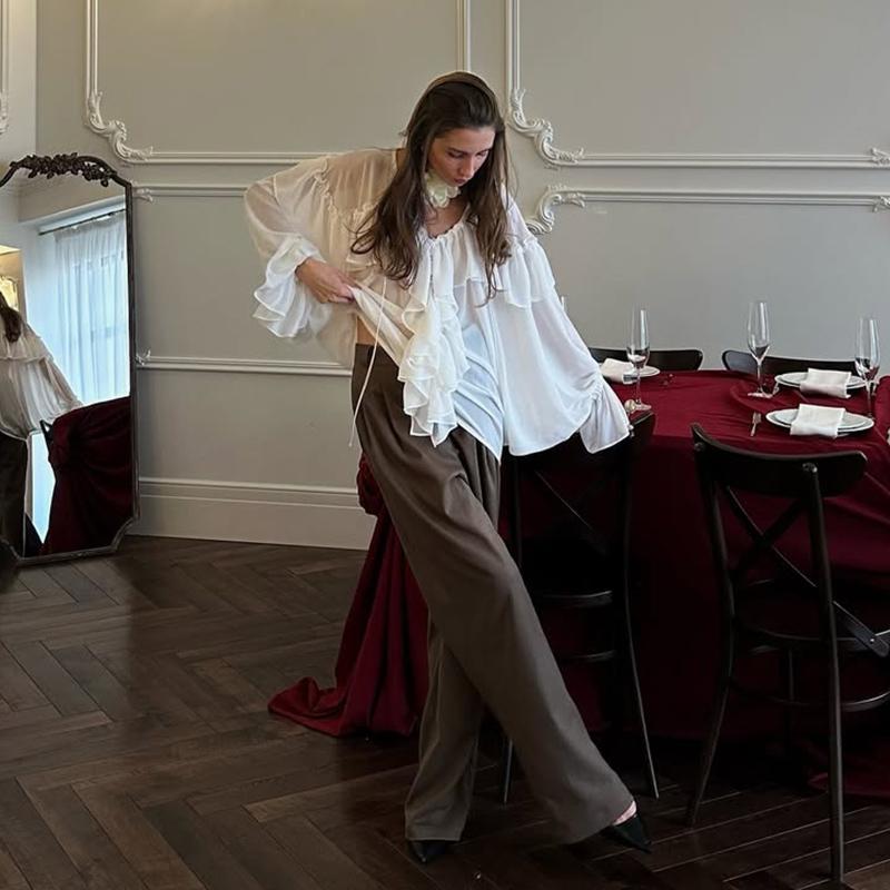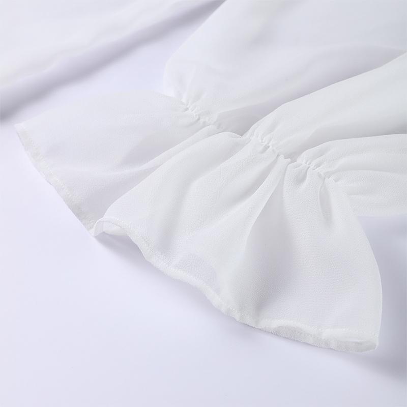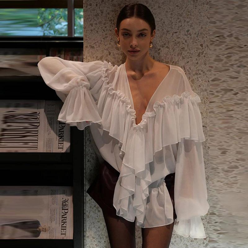 Женские шифоновые рубашки с оборками, белые свободные прозрачные блузки с V-образным вырезом и рукавами-фонариками, весна-лето 2025, женская верхняя одежда для поездок на работу