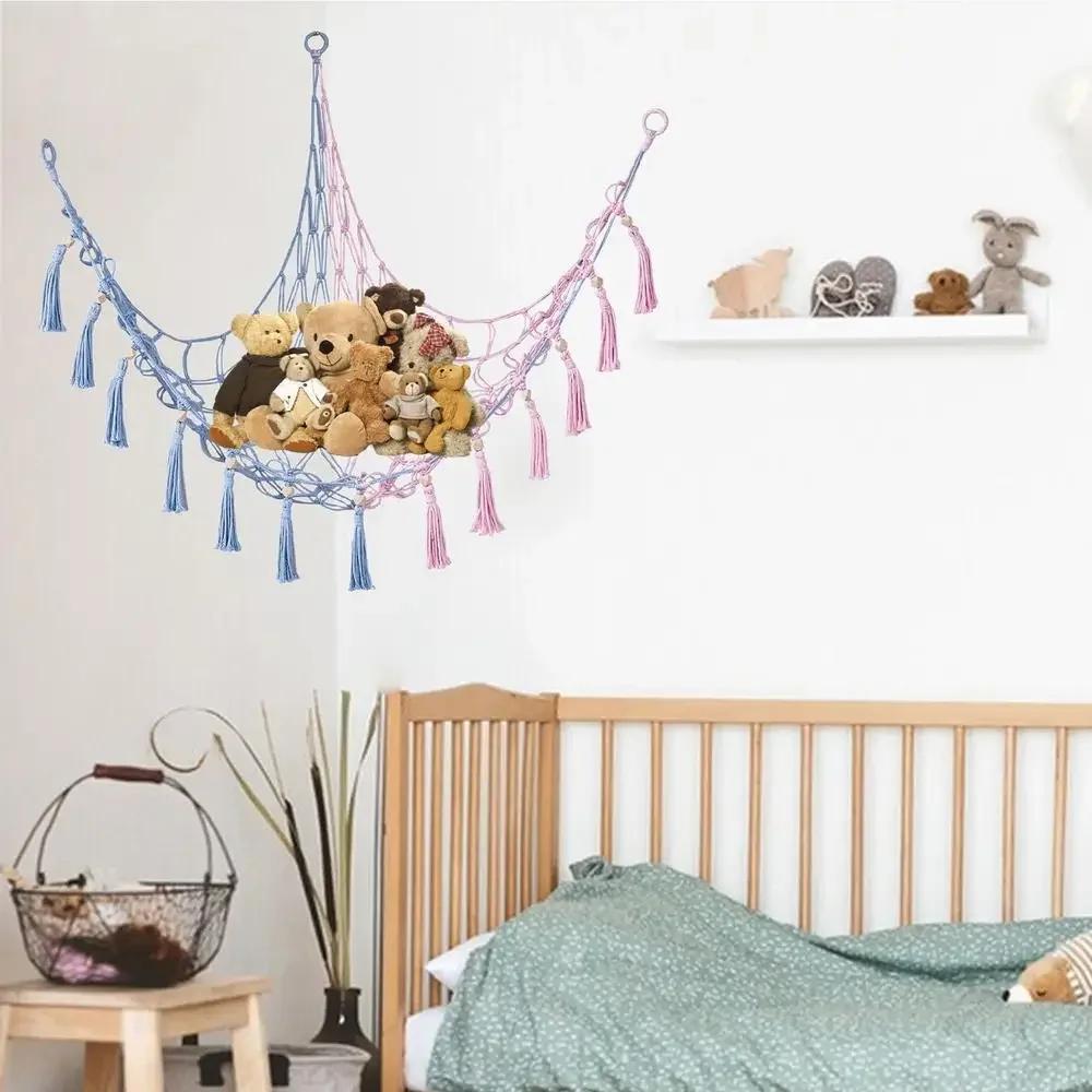 Игрушечные гамаки, креативный настенный угловой подвесной сетчатый органайзер для хранения вещей, минималистичный стиль, плетеная хлопковая веревка, сетка для хранения вещей, гамак