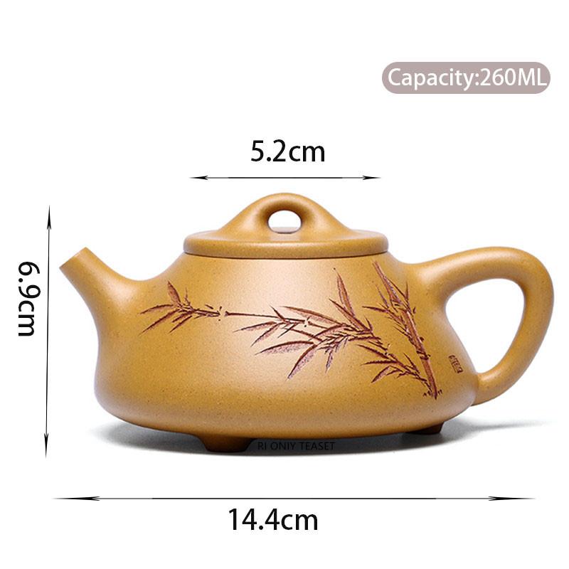 260 мл Китайский Исинский Чайник из Фиолетовой Глины Каменный Совок Ручной Работы Лист Бамбука Цзыша Чайник из Сырой Руды Золотой Секции Глины Чайный Набор
