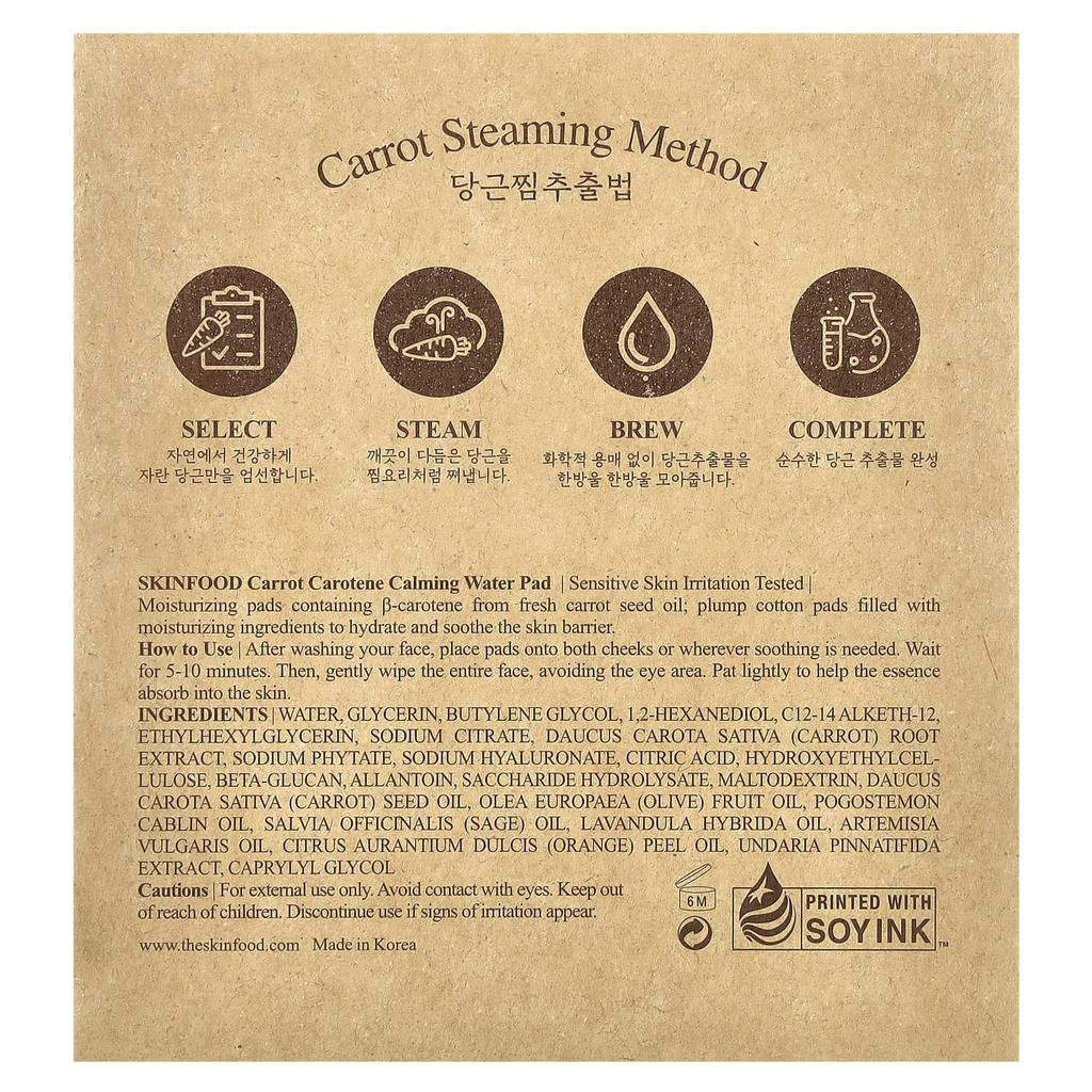 SKINFOOD, морковный каротин, успокаивающие водные пэды, 60 штук