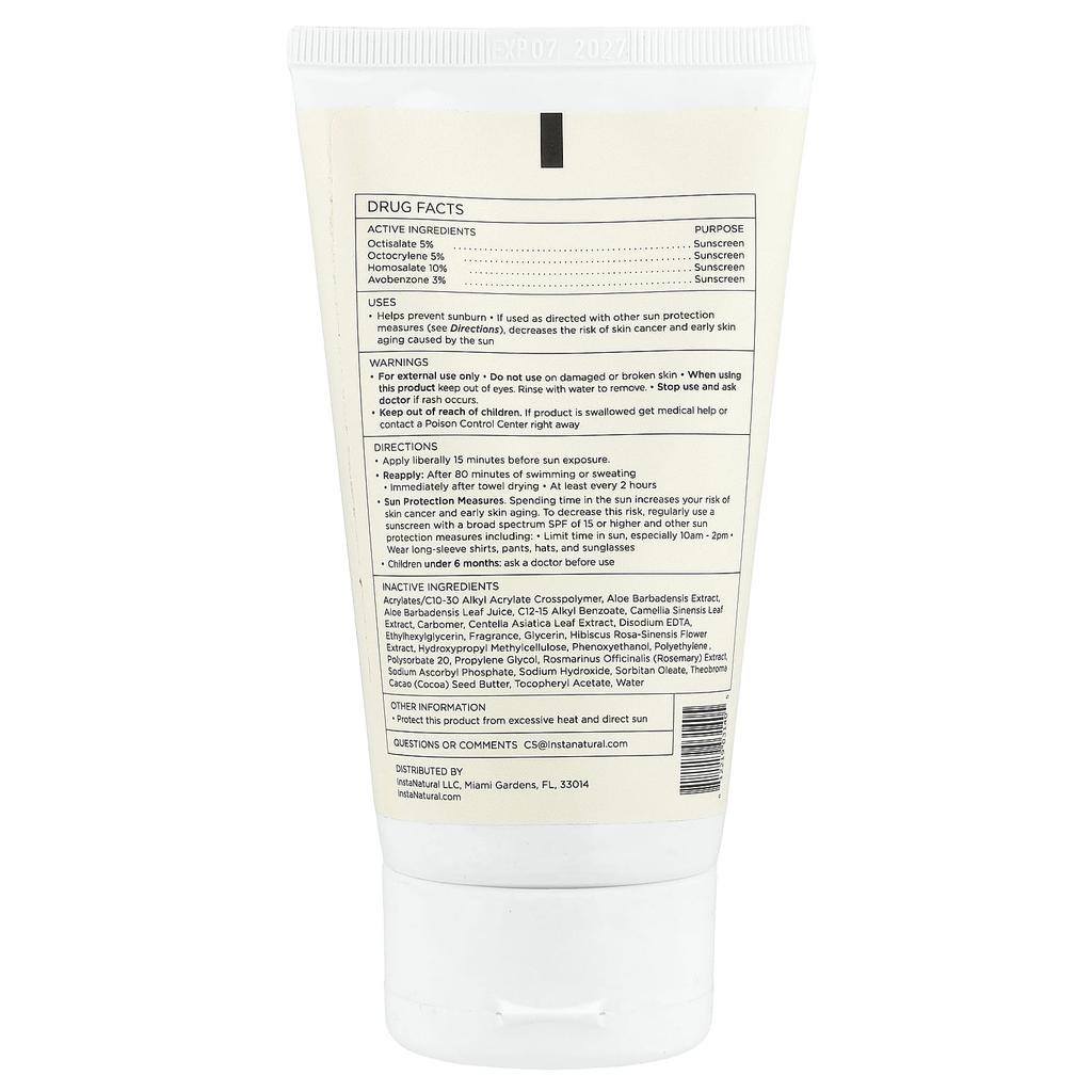 ингредиенты: Информация о препаратеАктивные ингредиентыИспользованиеОктисалат 5%Солнцезащитный кремОктокрилен 5%Солнцезащитный кремГомосалат 10%Солнцезащитный кремАвобензон 3%Солнцезащитный кремДругие ингредиенты: Акрилат/c10-30 алкилакрилат кроссполимер, сок листьев алоэ вера, c12-15 алкилбензоат, зеленый чай (камелия) экстракт листьев китайского чая, карбомер, экстракт листьев центеллы азиатской, динатрий ЭДТА, этилгексилглицерин, ароматизатор, глицерин, экстракт гибискуса розового, гидроксипропилметилцеллюлоза, феноксиэтанол, полиэтилен, полисорбат 20, пропиленгликоль, розмарин (Розмарин лекарственный) экстракт, аскорбилфосфат натрия, гидроксид натрия, олеат сорбита, какао (Теоброма какао) масло семян, токоферола ацетат, очищенная вода.