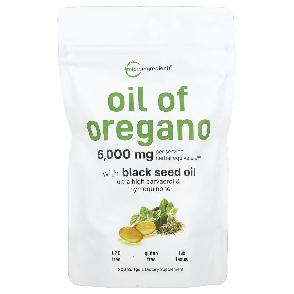 Micro Ingredients Масло орегано с маслом черного тмина, 300 мягких капсул