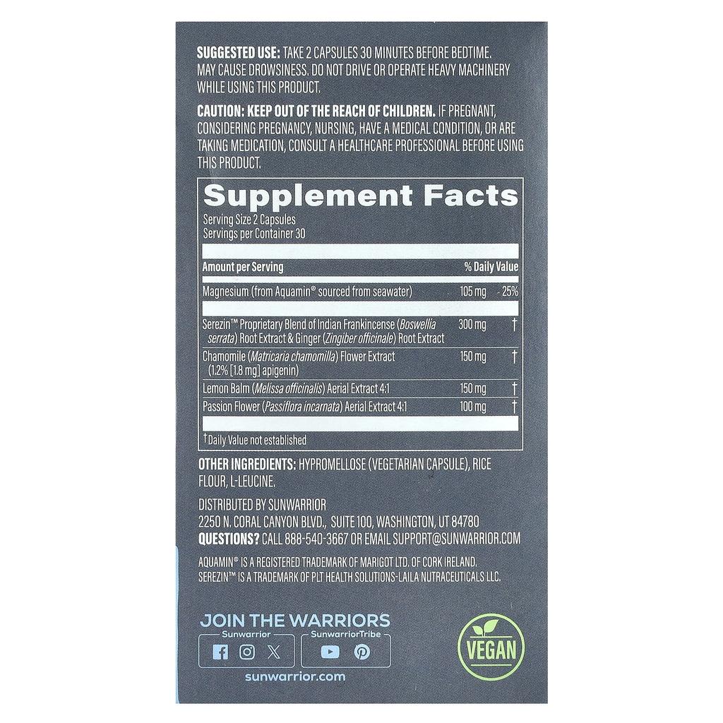 Sunwarrior Ночной сон и восстановление, 60 вегетарианских капсул