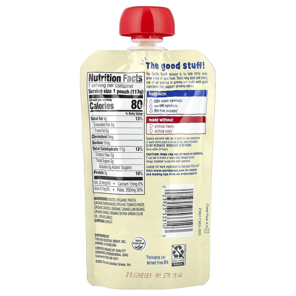 Earth's Best, Organic Pasta + Veggie Puree, 7+ Months, Marinara, with Vegetables, 4 oz (113 g)