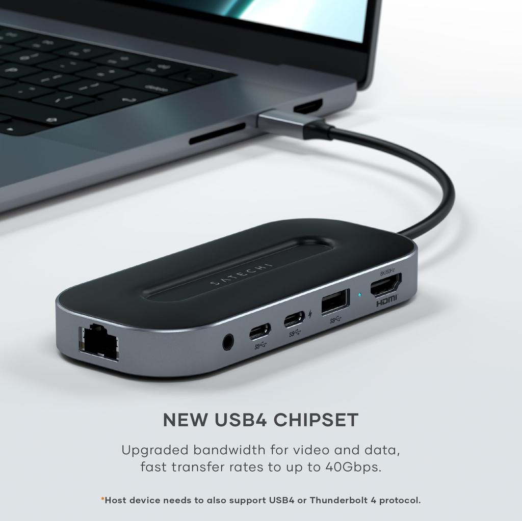 Мультиконцентратор Satechi USB4 (6-в-1) оснащен технологией нового поколения, которая расширяет количество портов вашего Mac до нескольких для удобного доступа к периферийным устройствам и улучшает функциональность вашего рабочего пространства.