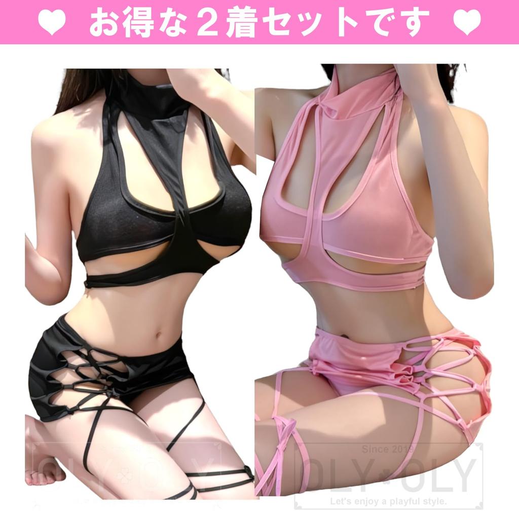 of Extreme Sexy Cosplay Underwear Bikini Tankini Sports Bra Wet Sheer Swimsuit Lingerie Black Peach 2 Color [OLYOLY] [Set 2] (09 Set)