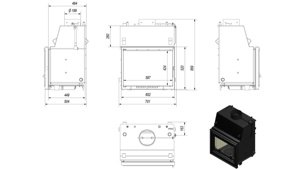 Water heating fireplace KRATKI ZUZIA DECO 12 kW Ø 200 black thermotec lining