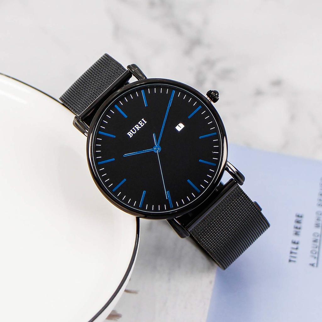 BUREI использует высококачественный японский кварцевый механизм.. Точное измерение времени, а корпус часов изготовлен из водонепроницаемой технологии, что делает его более гладким и удобным.. Он может удовлетворить ваши повседневные потребности, такие как водонепроницаемость, защита от дождя, защита от брызг воды при мытье рук и т. д.