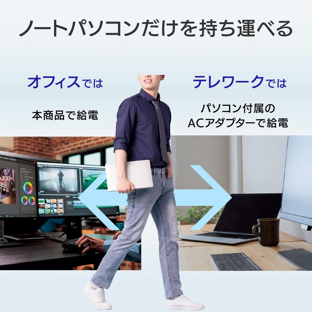 [Совместимо с USB Power Delivery! Может заряжать ПК мощностью до 60 Вт] Совместим со стандартом «USB Power Delivery», поэтому, объединив его с ноутбуком, соответствующим тому же стандарту, вы можете заряжать компьютер с помощью одного USB-кабеля. (Type-C) (*Ноутбук должен быть совместим с USB PD).