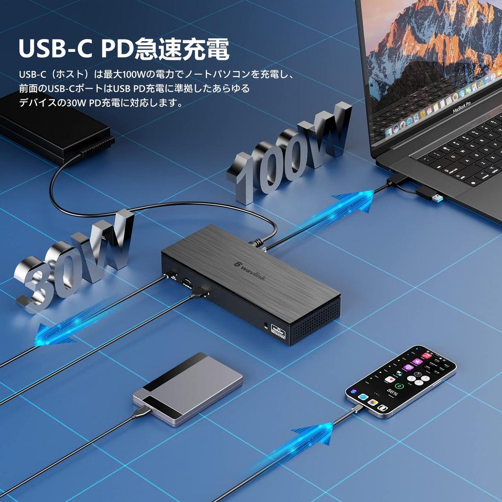 Док-станция WAVLINK Type c 20-в-1 / Четыре дисплея 4K / Два дисплея 5K / До 5K (5120x2880 @ 60 Гц) выход на дисплей / совместимость с Power Delivery 100 Вт / 4 * выходных порта DP / 4 * выходных порта HDMI / 2 * порта USB-C / порт USB-A3.1 / 3 * порта USB-A3.0 / порт Gigabit Ethernet / карты microSD и SD Оснащен слотом / аудиоразъемом 3,5 мм, совместим с Windows 7/8/10/11, Mac OS 10.8 и более поздними версиями, Android, Chrome OS