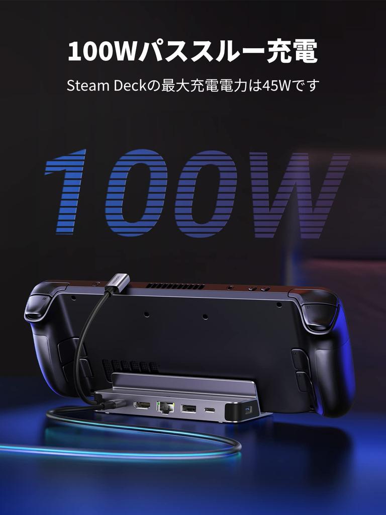 [Быстрая зарядка PD 100 Вт] Эта док-станция Steam deck/Switch оснащена совместимым с PD портом USB-C, что очень удобно для зарядки Steam deck/Switch.. Оригинальное зарядное устройство Steam Deck имеет мощность 45 Вт, поэтому при использовании оригинального зарядного устройства мощностью 45 Вт устройство заряжается до 51% за 1 час.. Играя и заряжая одновременно, вы можете наслаждаться играми без перерывов.. уведомление: Порт зарядки PD не поддерживает передачу данных или видео.