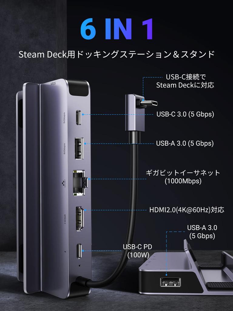 [Док-станция 6-в-1 для Steam Deck/Switch] Эта док-станция для телевизора для Steam Deck/Switch позволяет вам подключать Steam Deck/Switch и т. д.. к широкоэкранному телевизору или монитору через порт HDMI для запуска игр, воспроизведения видео и улучшения игрового процесса. Порты USB-A 3.0 и USB-C 3.0 этого продукта позволяют подключать такие устройства, как мышь, клавиатура и геймпад для многофункциональной работы.