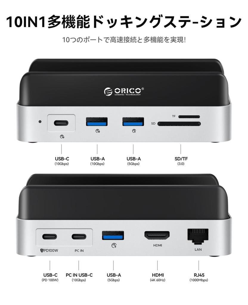 [Встроенный высококачественный твердотельный накопитель M.2 емкостью 1 ТБ] Эта док-станция имеет встроенный твердотельный накопитель ORICO J10 емкостью 1 ТБ NVMe M.2 типа 2280 (PCIe Gen3 x4) с максимальной скоростью чтения/записи 1000 МБ/с, что позволяет вам легко использовать внешнее хранилище и другие функции, такие как порт USB и вывод на дисплей одновременно, что значительно повышает эффективность вашей работы. Это особенно полезно для мобильных офисов и пользователей, которые часто путешествуют.