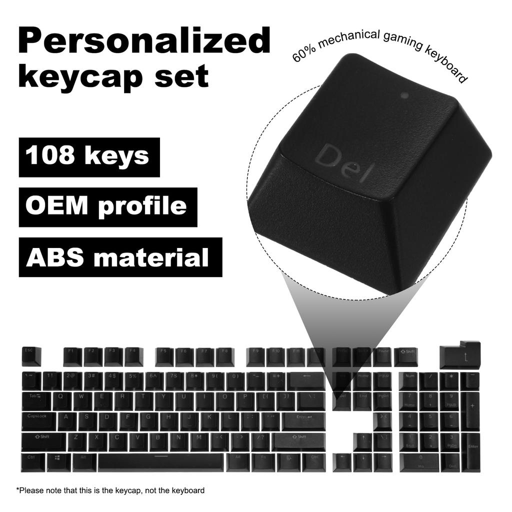 Размер набора индивидуальных клавиш: 108 клавиш, материал ABS, профиль OEM, 60% механических свойств для игровой клавиатуры Содержимое упаковки: 1 шт. Набор персонализированных клавишных колпачков