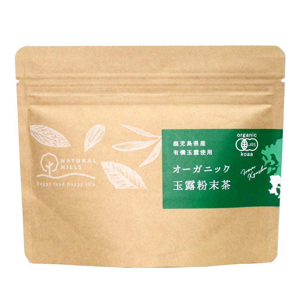 Порошкообразный Гёкуро, приготовленный из органического сертифицированного JAS Гёкуро из префектуры Кагосима.