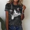 Женская футболка с 3D-принтом в виде милого кота, с круглым вырезом и короткими рукавами, модный и простой стиль