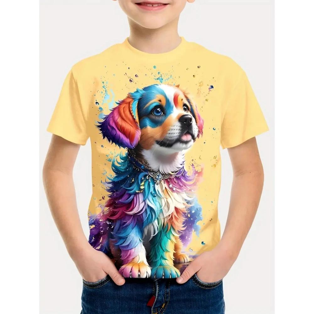 Новая повседневная детская одежда с принтом в виде собаки в стиле ретро, футболка, модная детская одежда для мальчиков