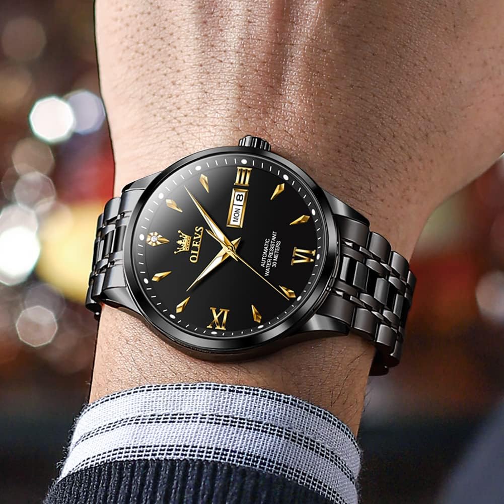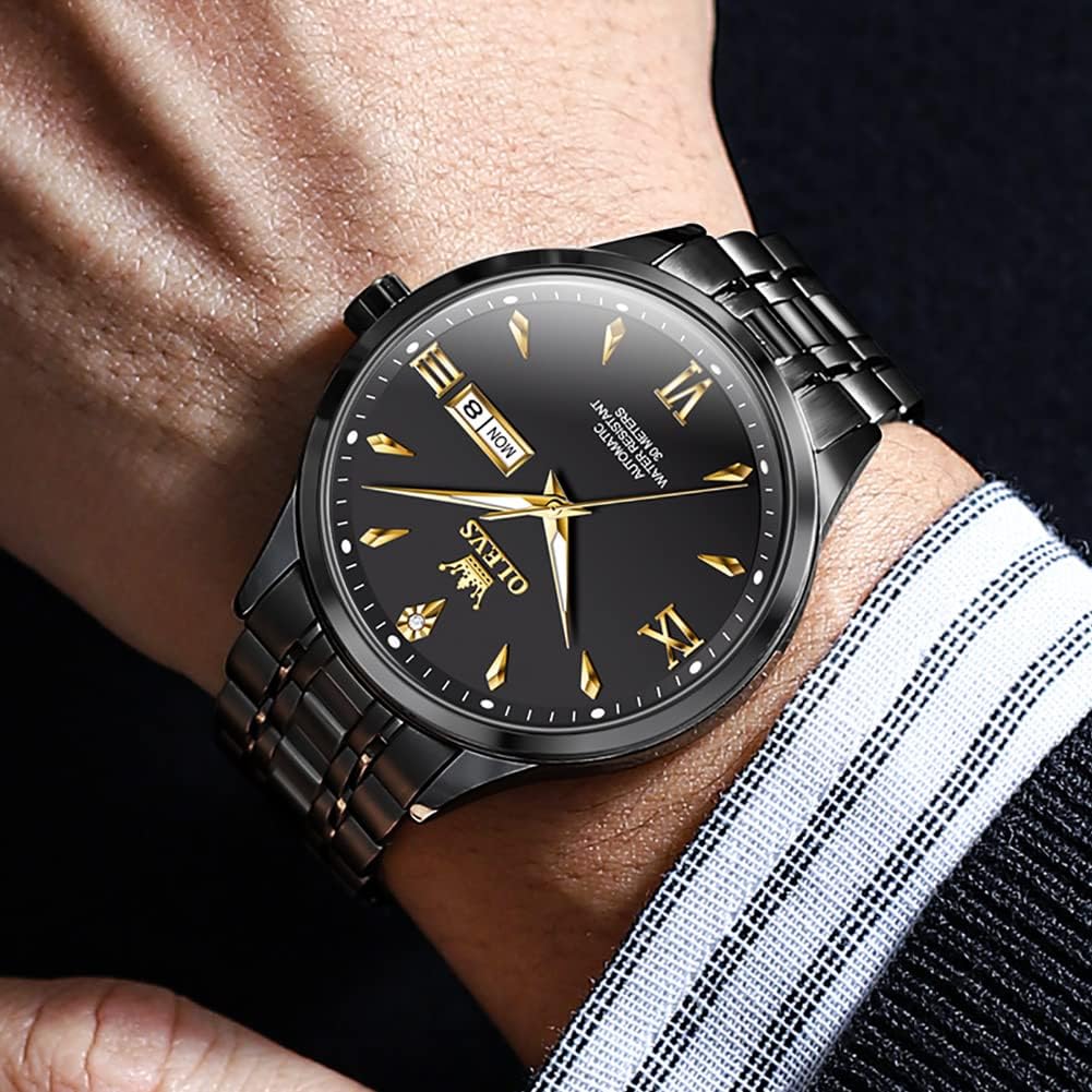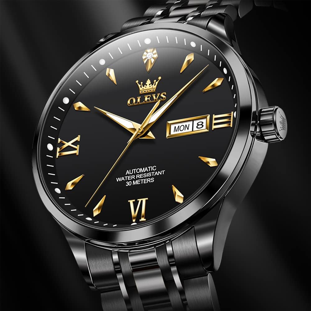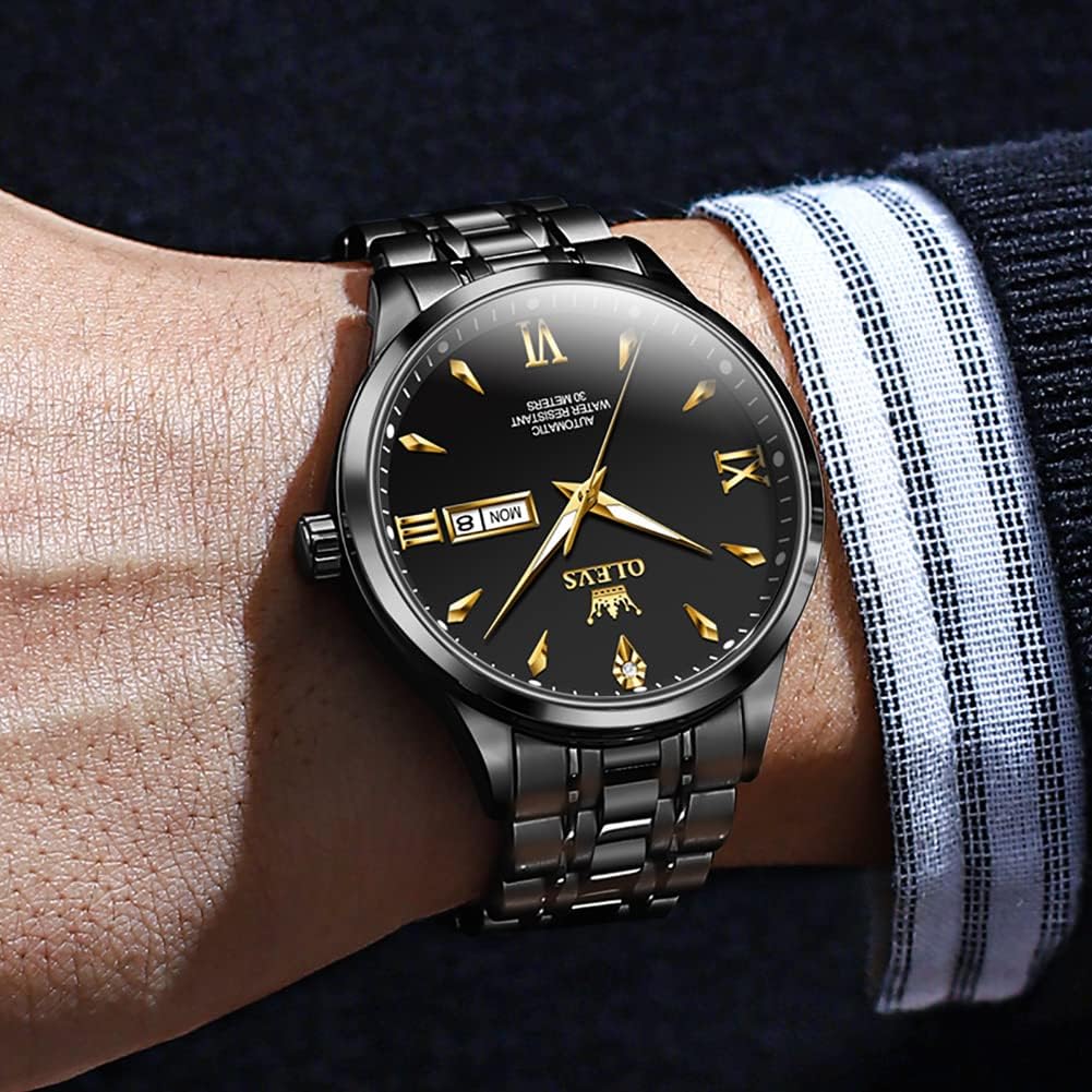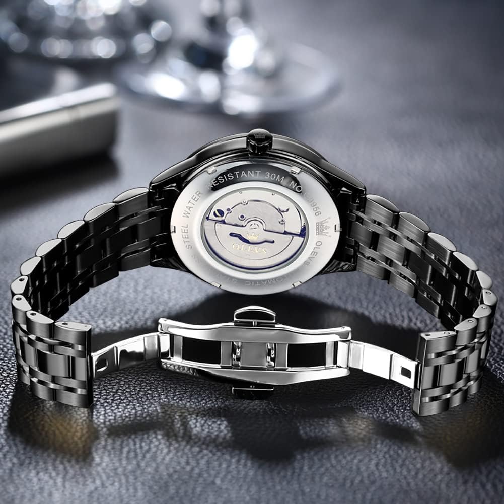 OLEVS автоматические часы механические наручные часы водонепроницаемые светящиеся дата черный полый циферблат из нержавеющей стали стильные часы черные мужские - мужские - - мужские