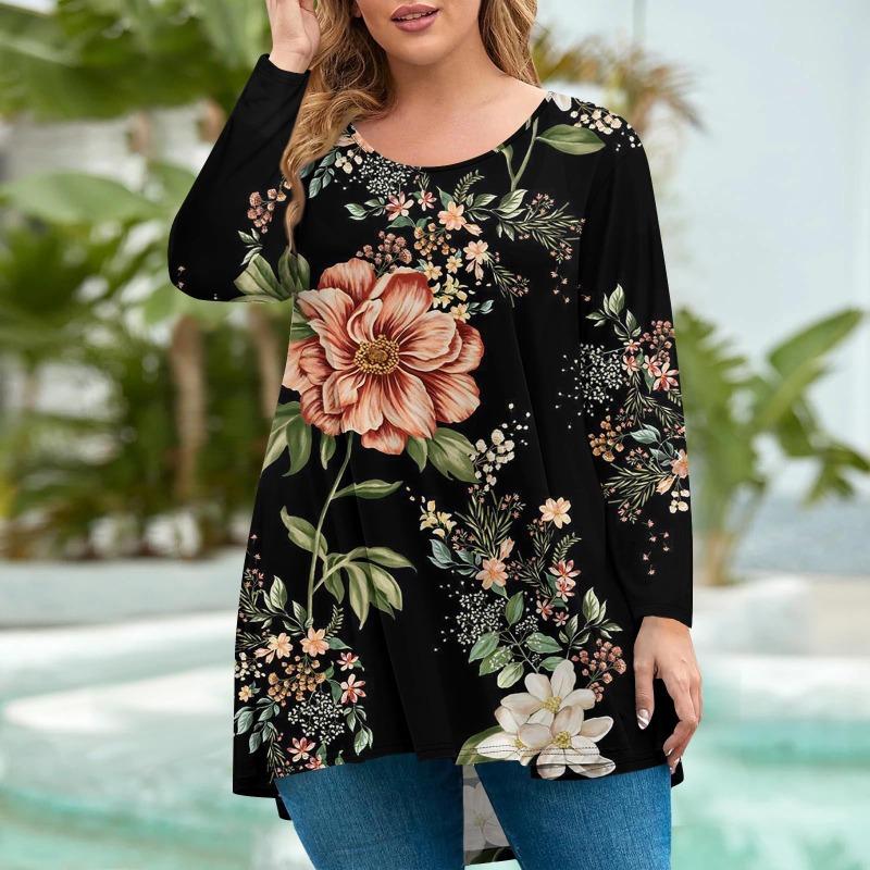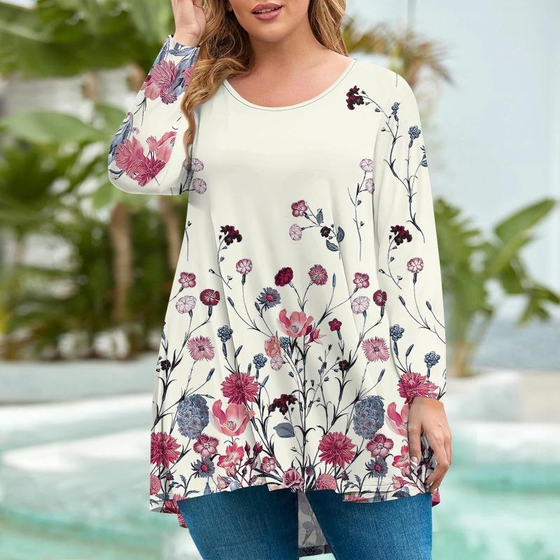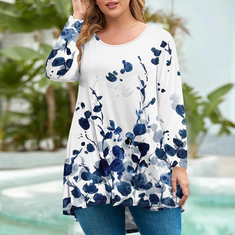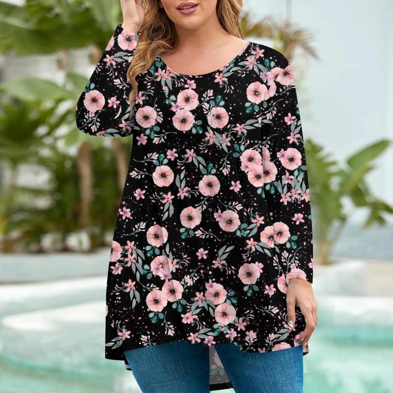 Женская мода большого размера с круглым вырезом и длинным рукавом, повседневный свободный пуловер с принтом