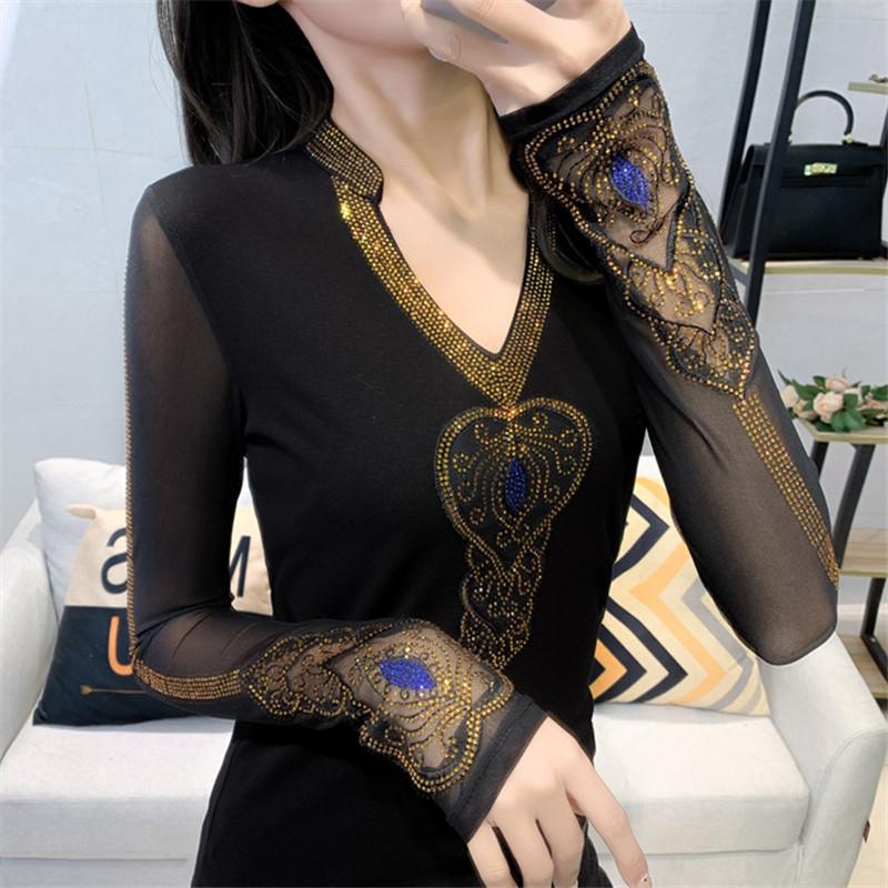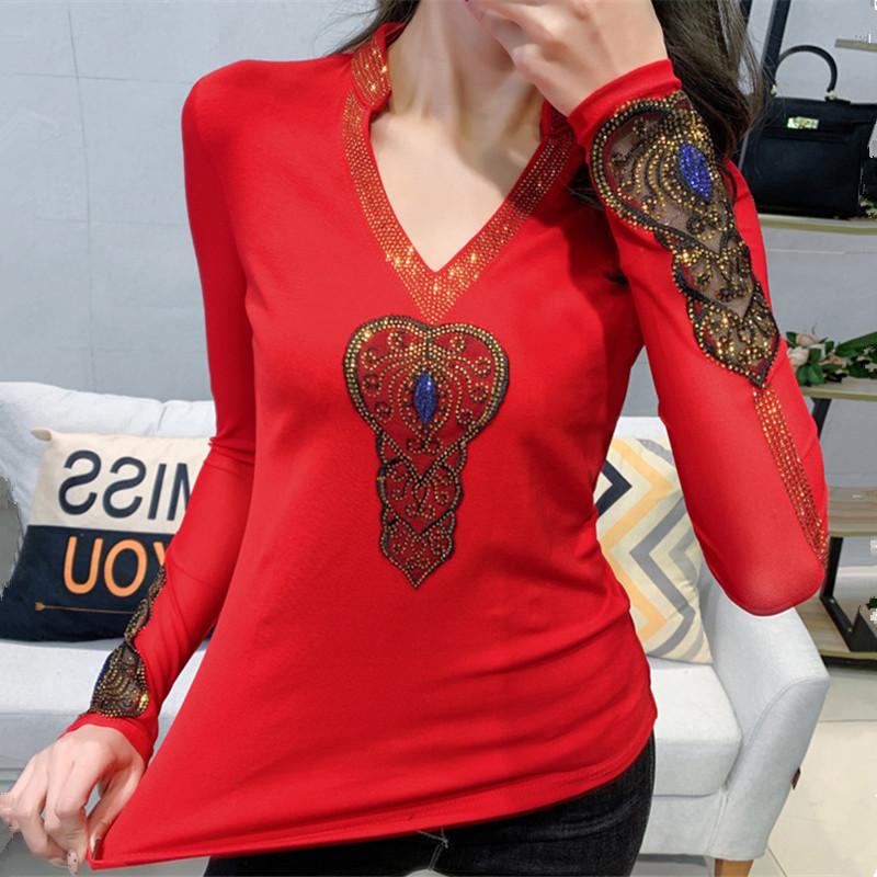 Футболка с V-образным вырезом Heavy Industry, женская, с длинными рукавами, кружевная, пэчворк, маленькая рубашка, верхняя часть, весенняя базовая рубашка