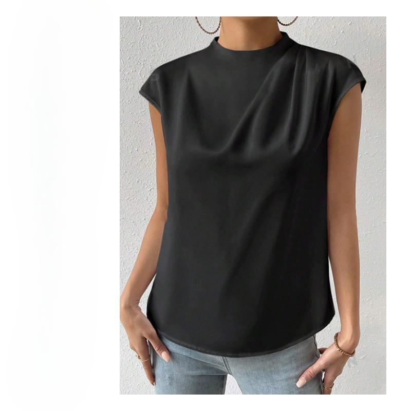 Шелковый топ, женская атласная футболка, короткий рукав, базовый костюм, летняя верхняя одежда с круглым вырезом, футболки