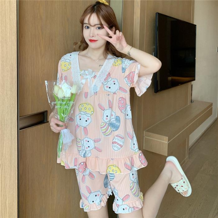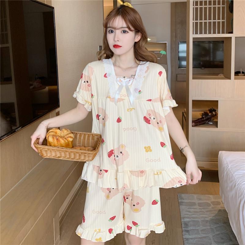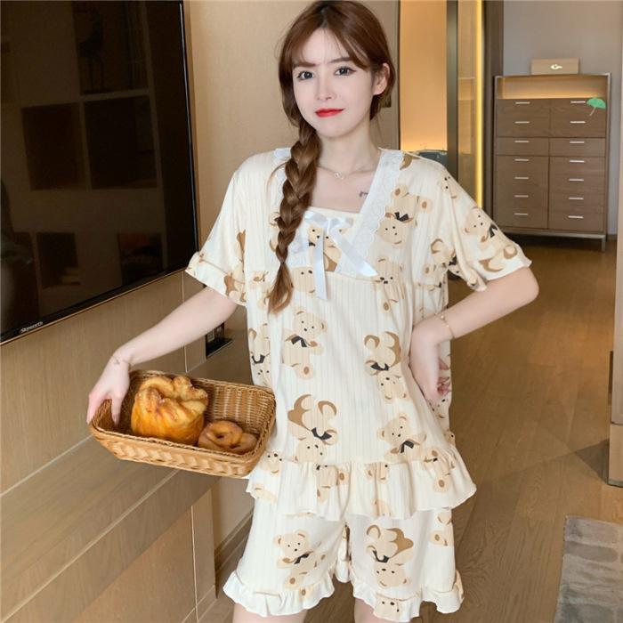 Женские пижамы женские летние пижамы с короткими рукавами для студентов тонкие кружевные секции для отдыха можно носить вне домашней одежды