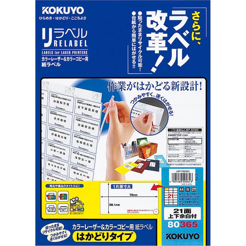 Цветной лазерный принтер KOKUYO для цветной копии этикеток, тип масштабирования, 21 сторона, с верхними и нижними полями, 100 листов, LBP-E80365