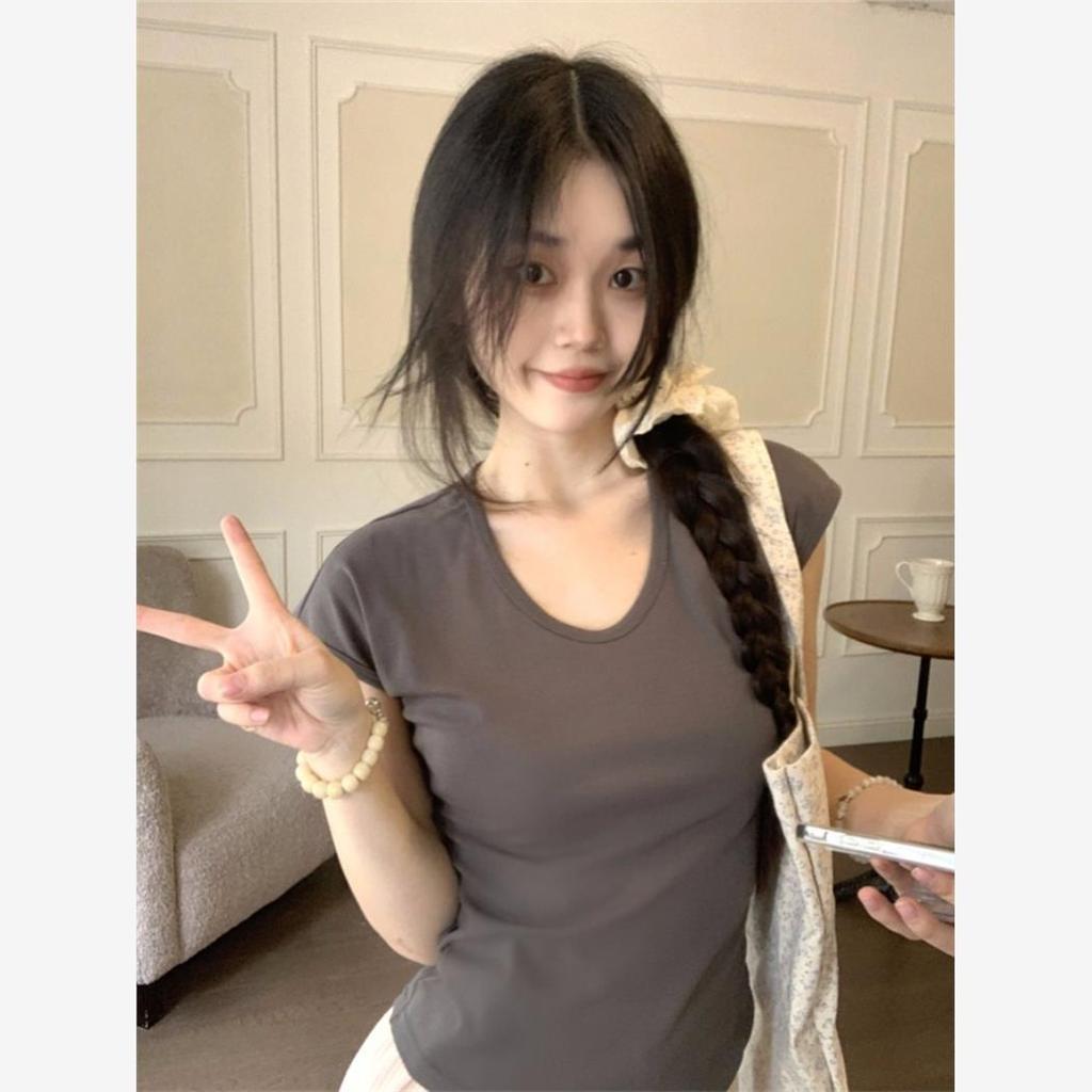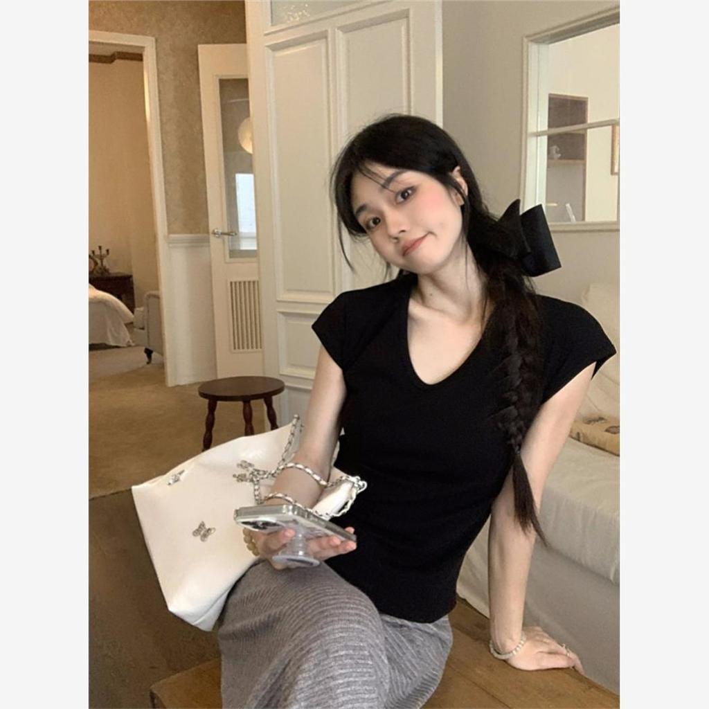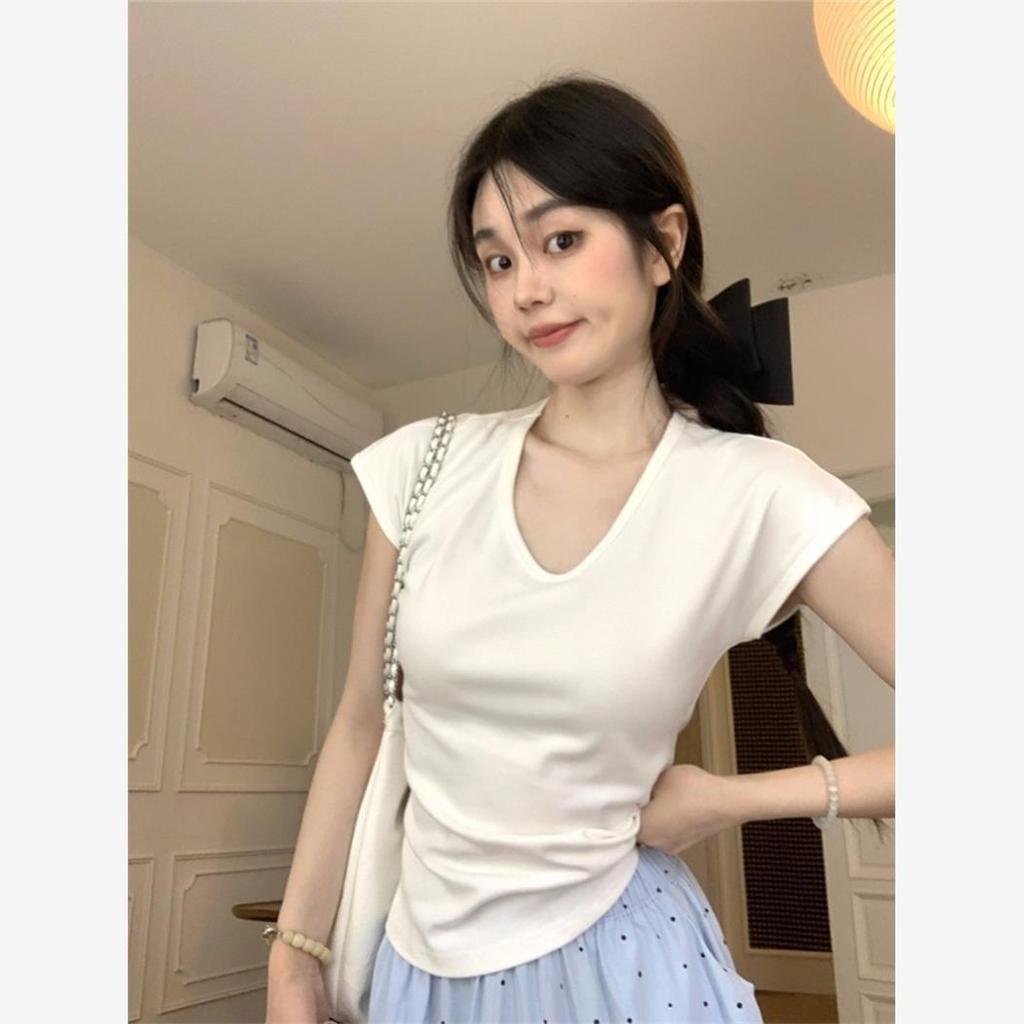 Футболка Design Sense с V-образным вырезом и коротким рукавом, женская летняя, новая, нестандартная, короткая, студенческая, топ, тренд