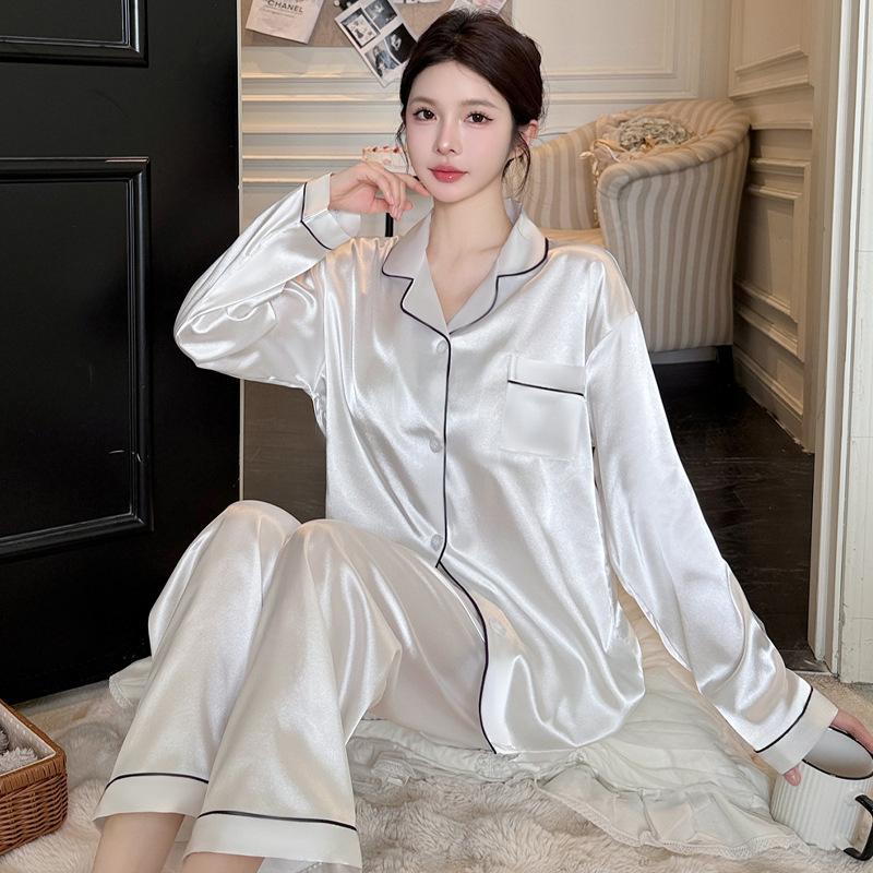 Весенне-летняя женская пижама в скандинавском стиле из шелка Ice Silk, комплект домашней одежды с длинными рукавами, комплект домашней одежды Senior Sense of Comfort