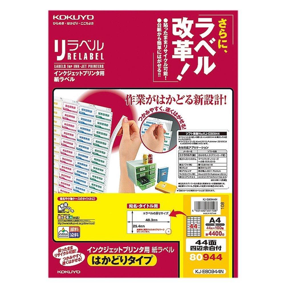 Наклейки для струйной печати KOKUYO, 44 стороны, 100 листов, KJ-E80944N