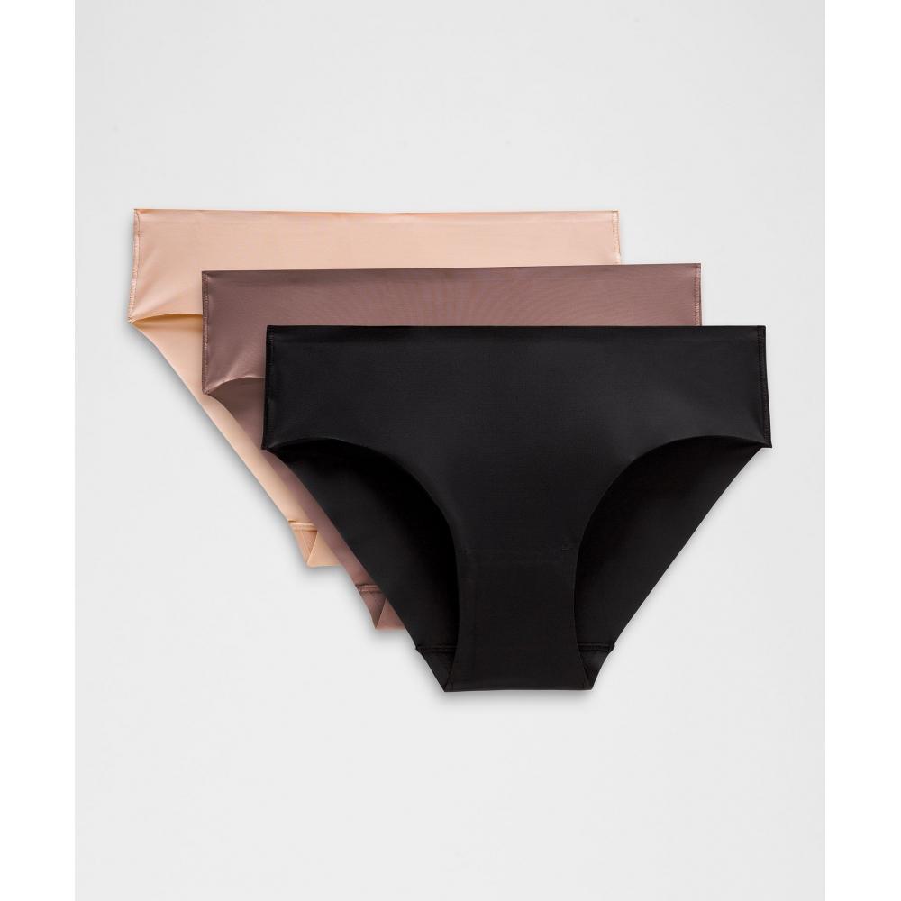 Lululemon Invisiwear Mid Rise Bikini Underwear 3 Pack Black Twilight Rose Misty Shell