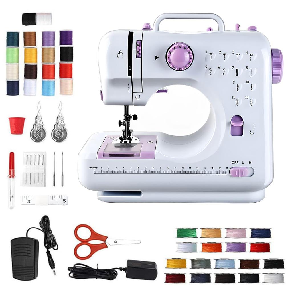 [Многофункциональная маленькая электрическая швейная машинка] Эта мини-электрическая швейная машинка — это небольшая домашняя электрическая швейная машинка для начинающих, независимо от возраста и пола.. Вы можете использовать эту швейную машинку в качестве хобби, не только шить повседневные заплатки для одежды, простыни и шторы, но и дарить самодельные подушки/куклы/детскую одежду в качестве подарков своей семье и друзьям.. Размер товара: 31,3 x 28,9 x 15,8 см. Вес: 2,45 кг. Для летних джинсов можно шить ткани толщиной до 3–5 слоев.