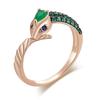 Современное кольцо-змея Ouroboros с черным акцентом, розовое золото, ювелирные изделия с зеленым цирконом, стильные женские аксессуары в русском стиле