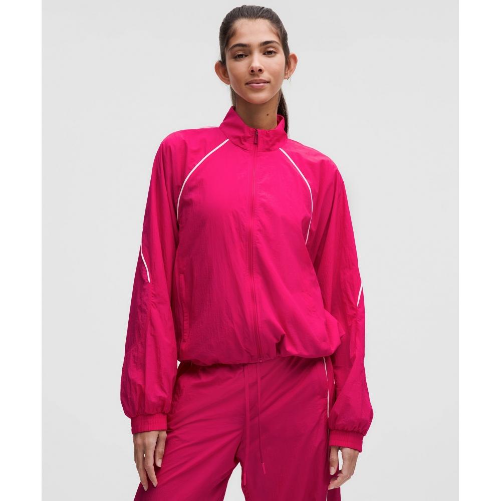 Ностальгический образ спортивного костюма, дополненный функциональными деталями. Эта легкая куртка выполнена из ткани с жатой текстурой, имеет свободный крой и утягивающийся подол для регулировки формы.