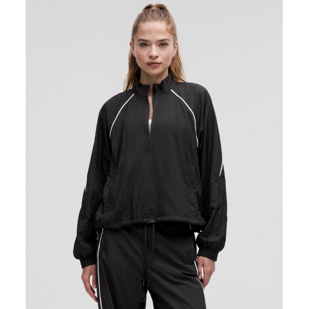 Ностальгический образ спортивного костюма, дополненный функциональными деталями. Эта легкая куртка выполнена из ткани с жатой текстурой, имеет свободный крой и утягивающийся подол для регулировки формы.
