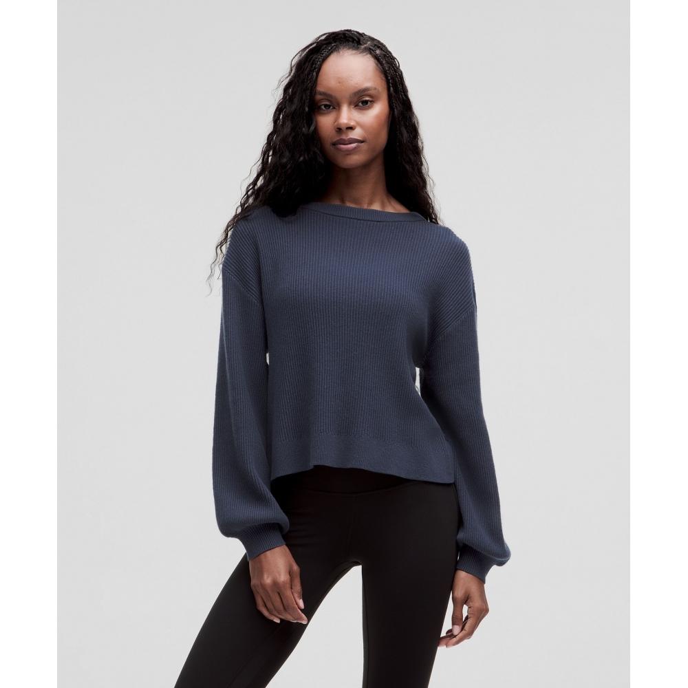 Свитер двусторонний, что позволяет легко переворачивать его спереди назад, чтобы изменить внешний вид и длину.