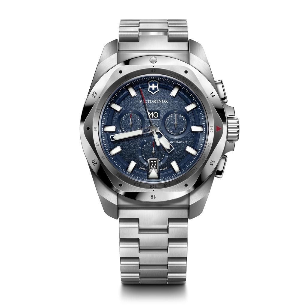 VICTORINOX CHRONO Корпус из переработанной нержавеющей стали Синий Серебристый Нержавеющая сталь Быстрое покрытие, устойчивое к царапинам Подарок I.N.O.X. Часы, Хронограф, (316L),