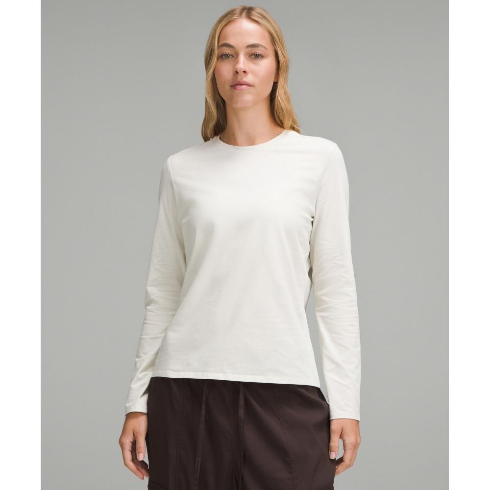 Lululemon Organic Cotton Crewneck Long Sleeve Shirt Bone — купить товар онлайн с бесплатной доставкой до всему миру!