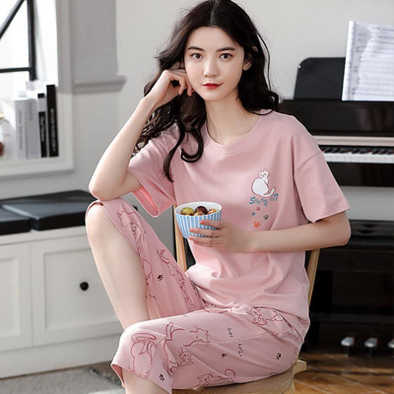 Летняя женская пижама, комплект домашней одежды, женские летние укороченные брюки с коротким рукавом, домашняя одежда, тонкий корейский повседневный комплект из двух предметов — купить товар онлайн с бесплатной доставкой по всему миру!