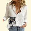Женская модная рубашка на пуговицах, повседневная, тонкая, с длинным рукавом, женская рубашка из хлопка и льна с принтом кота