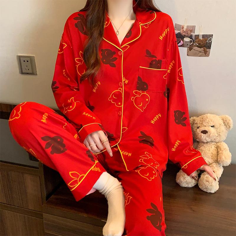 Весна и осень, новые женские красные пижамы, комплект домашней одежды, подростковая пижама с длинным рукавом, праздничный комплект домашней одежды для молодоженов