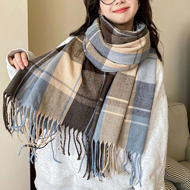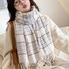 Зимний клетчатый шарф-имитация, шаль, уличный принтованный шарф средней длины, милый шарф-имитация, утолщенная теплая шаль
