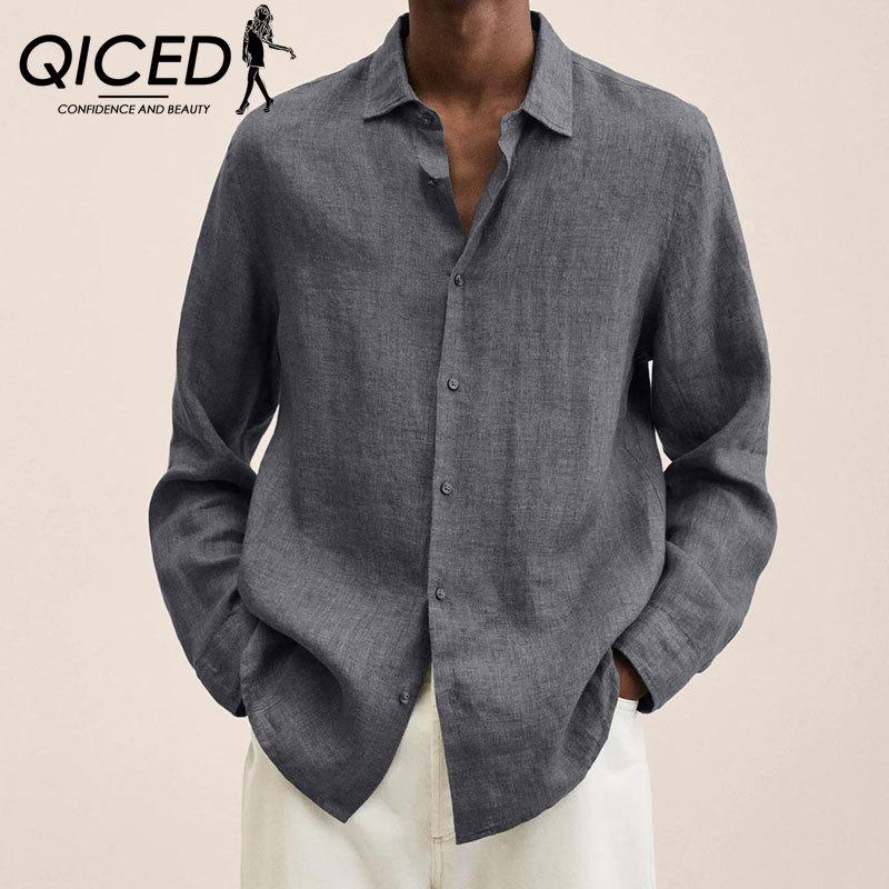 Осенняя мужская рубашка-поло с длинными рукавами и воротником-поло, свободные пуговицы, хлопковая рубашка