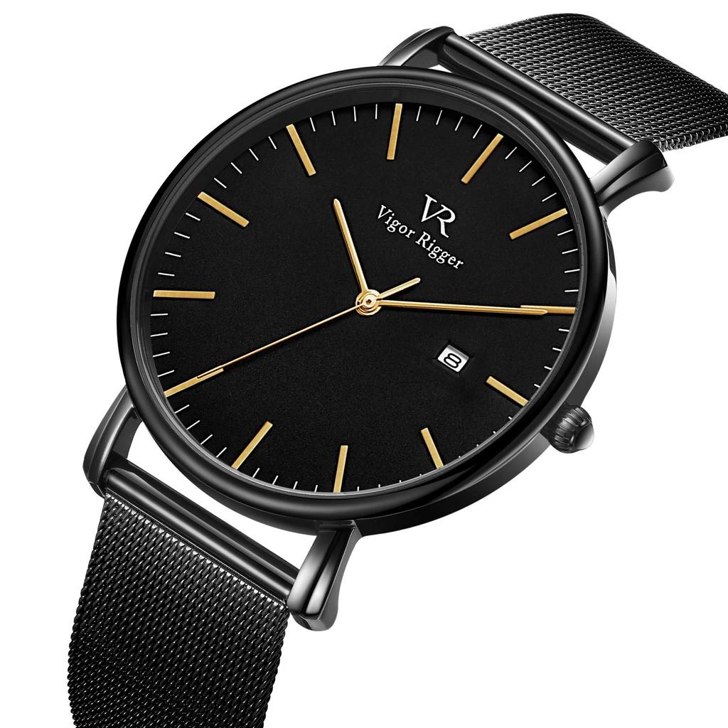Модные черные популярные простые часы стильные брендовые тонкие аналоговые часы деловые водонепроницаемые кварцевые часы [BUREI] мужские мужские мужские
