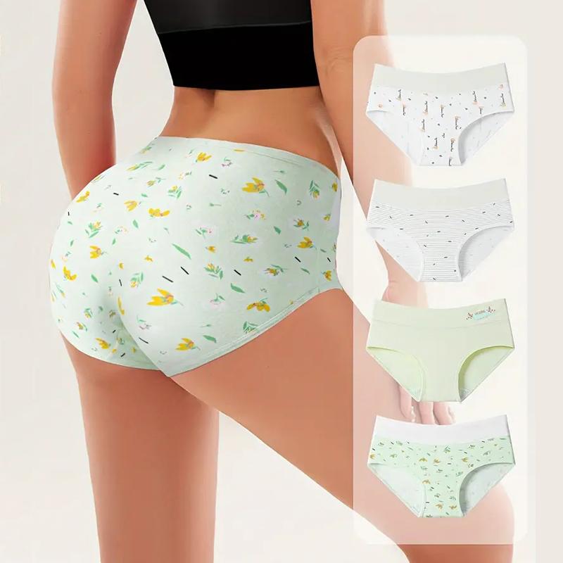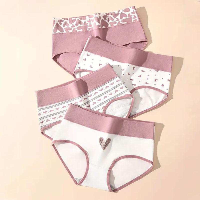 4 шт., женские трусики с высокой талией, нижнее белье с принтом, тонкие мягкие трусы из дышащего хлопка, сексуальные трусики, женское нижнее белье