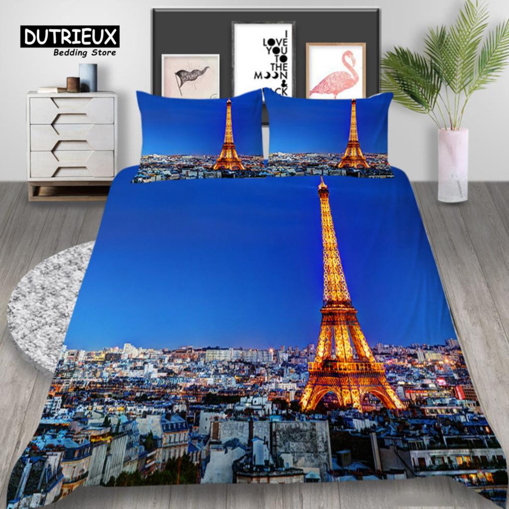 Пододеяльник с изображением Эйфелевой башни, современный французский комплект постельного белья с изображением городского пейзажа Парижа, 3D, европейское здание, одеяло, покрывало King для детей и взрослых, декор